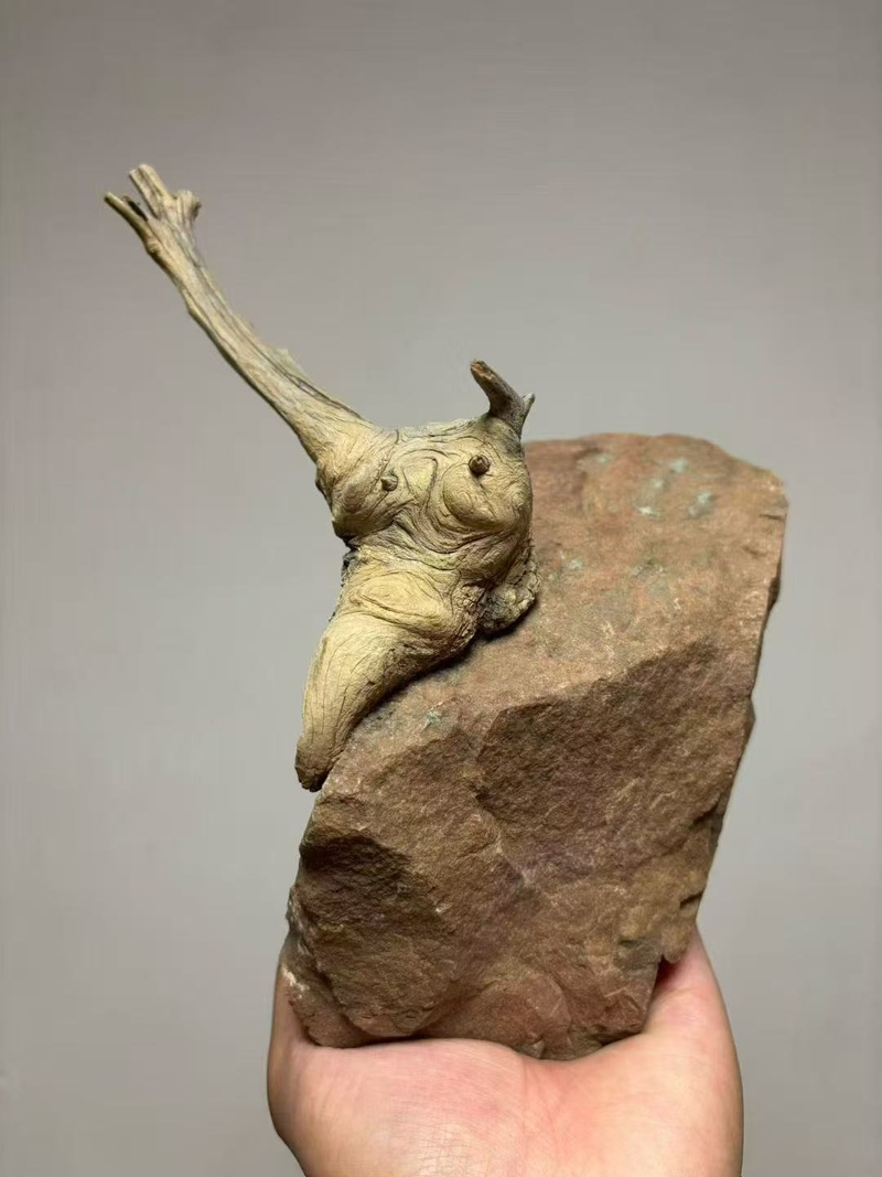 这块崖柏包石,是崖壁上长出的自然雕塑:木质的温润缠着石头的冷峻,刚柔相济,藏着山野的灵韵。